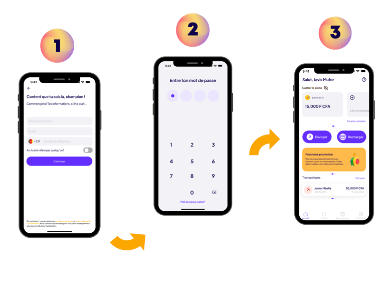 Vos données sont chiffrées, votre compte est protégé par votre mot de passe unique et nous n'avons pas accès à votre PIN mobile money.