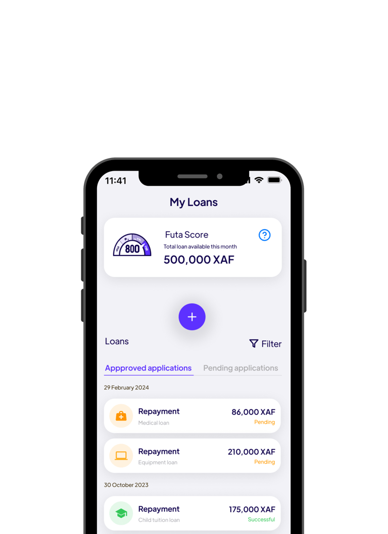 By receiving your salary via Futa and making a few monthly transactions on the platform, you will build your Futa score , which will give you access to :